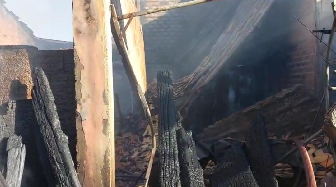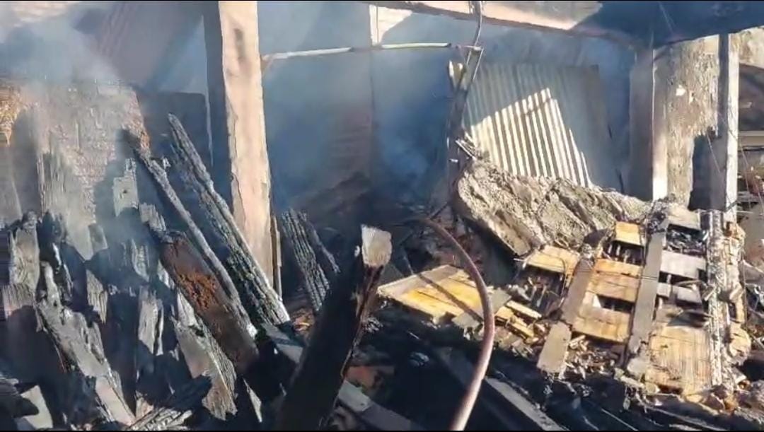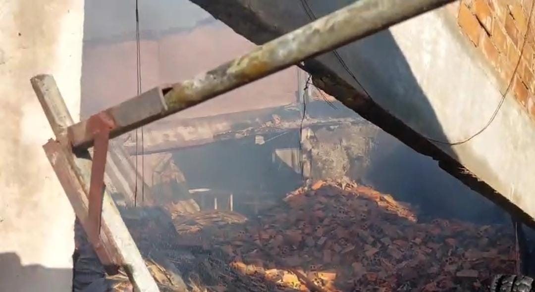 As chamas destruíram tudo o que havia dentro do galpão e o telhado desabou (veja fotos abaixo).