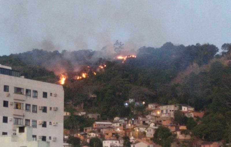 Um incêndio em um morro da área central de Florianópolis mobiliza os bombeiros militares na noite deste domingo (31). O chamado ocorreu às 17h40 e o objetivo é evitar que as chamas atinjam as casas do Morro da Nova Descoberta, ao lado do Morro da Mariquinha.