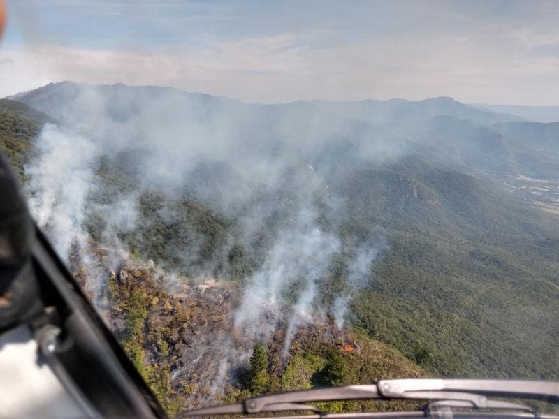 Um incêndio florestal registrado no Morro do Cambirela, em Palhoça, mobilizou o Corpo de Bombeiros Militar neste domingo (26). Como o local é de difícil acesso por terra, foi acionado o helicóptero Arcanjo 01 para fazer o combate às chamas. Em meio à fumaça, quatro pessoas foram resgatadas sem ferimentos. Novas ações na região ocorrem nesta segunda-feira (27).