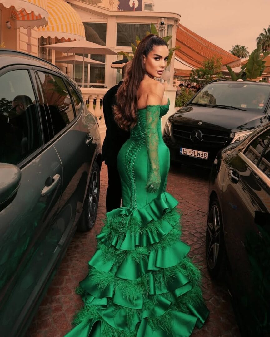 Tati Barbieri brilhou no Festival de Cannes, na França, com um vestido assinado pela estilista catarinense Karla Vivian. A influenciadora cruzou o tapete vermelho com um look bafônico em verde-esmeralda feito exclusivamente para ela. A peça foi pensada justamente para exaltar a moda autoral brasileira.