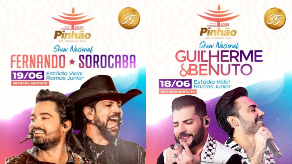 O segundo lote de ingressos gratuitos para os shows das duplas sertanejas Guilherme & Benuto e Fernando & Sorocaba na Festa do Pinhão em Lages, já está disponível no site oficial do evento.