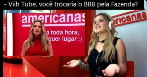 A Ingrid Guimarães PERGUNTANDO SE A VIIH TUBE TROCARIA O BBB PELA FAZENDA KKKKKKKKKK