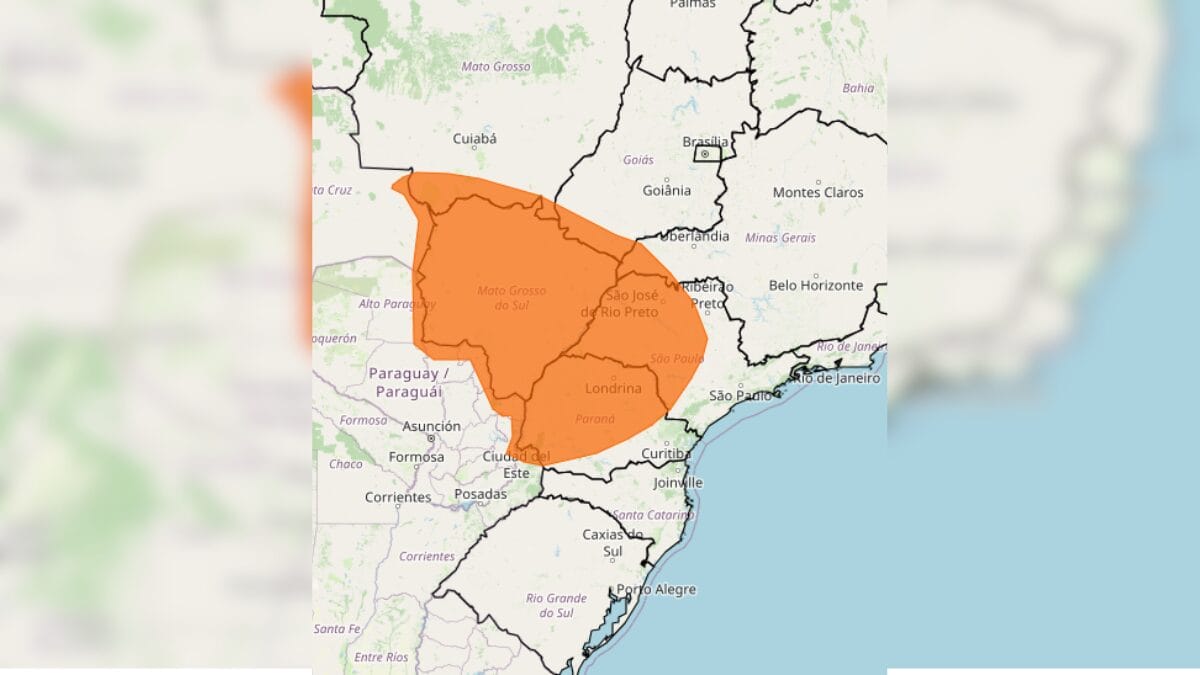 Já em São Paulo, as regiões de Presidente Prudente, São José do Rio Preto, Bauru e Araçatuba estão na rota do alerta. No Paraná, o Inmet sinalizou que o Norte Pioneiro Paranaense, Centro Ocidental Paranaense, Noroeste, Norte Central, Centro-Sul, Centro Oriental, Sudeste e região Metropolitana de Curitiba, podem ser afetados.