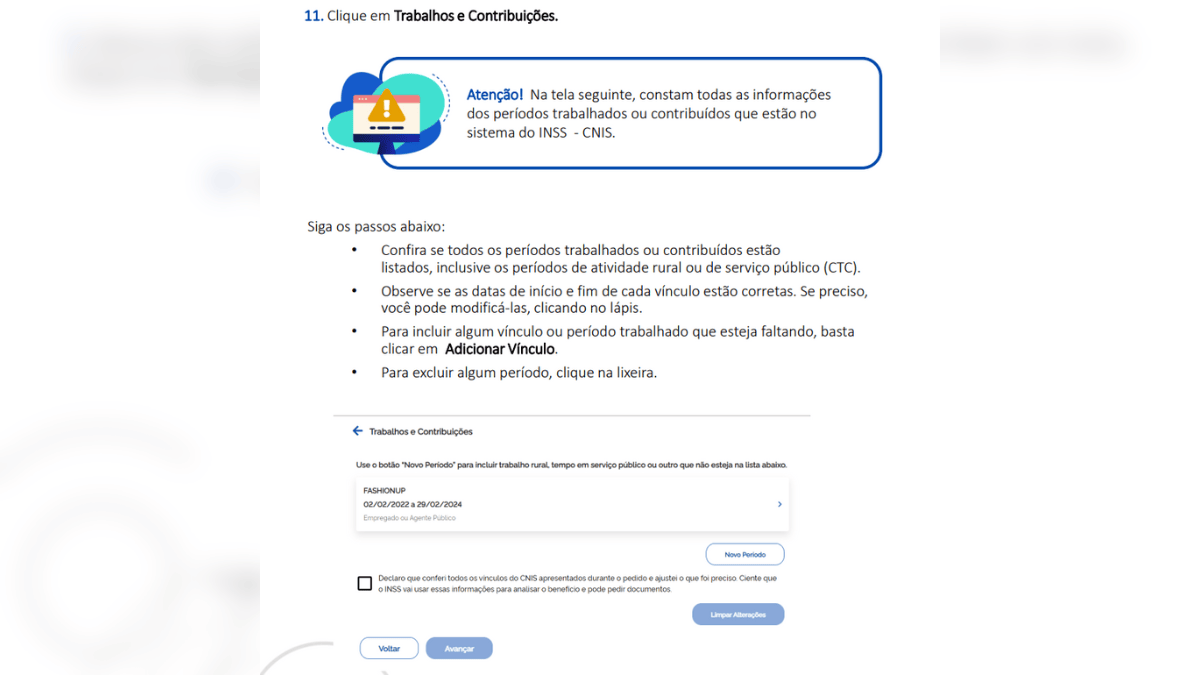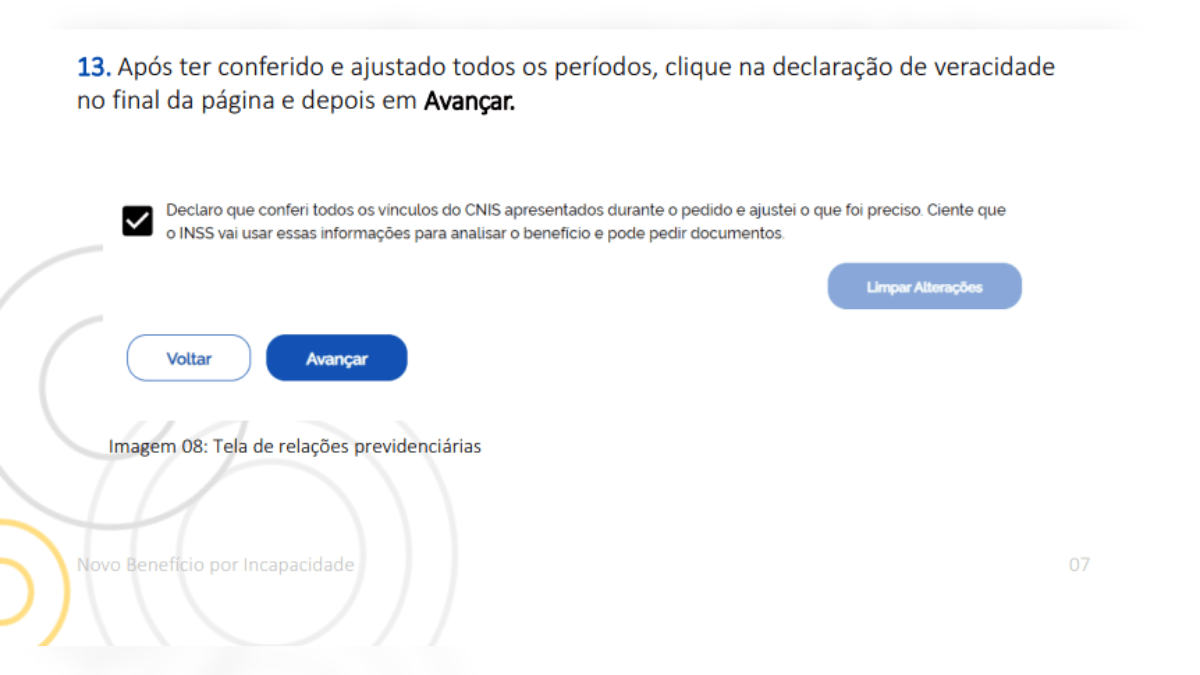 - Navegar até a seção de “Histórico de Crédito de Benefício”