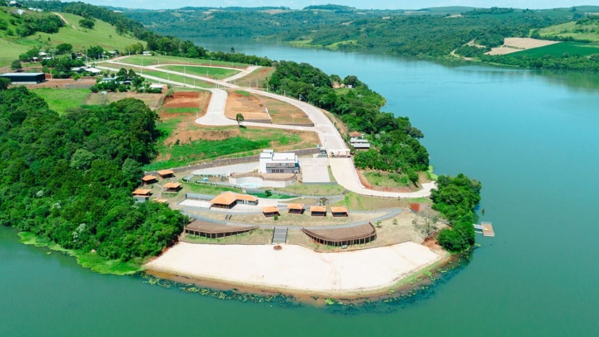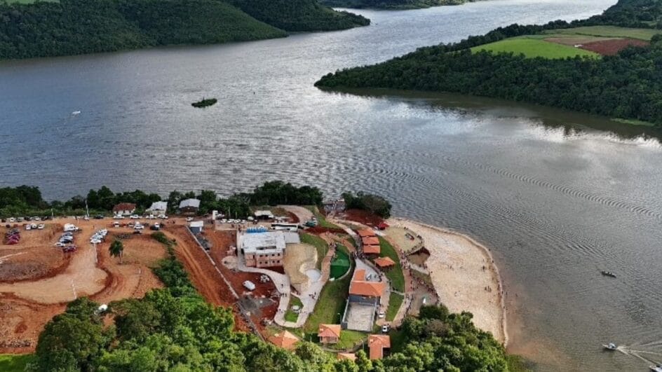 Instalada às margens do lago formado pela Usina Foz do Chapecó, no Rio Uruguai, a estrutura foi planejada para transformar a relação do município com a água, oferecendo um ambiente semelhante ao litoral em plena região interiorana. O espaço conta com faixa de areia artificial, píer, quiosques, restaurante e áreas de convivência, compondo um complexo voltado ao turismo e ao entretenimento.
