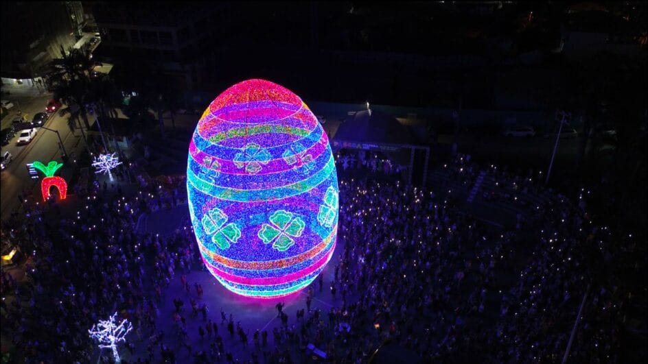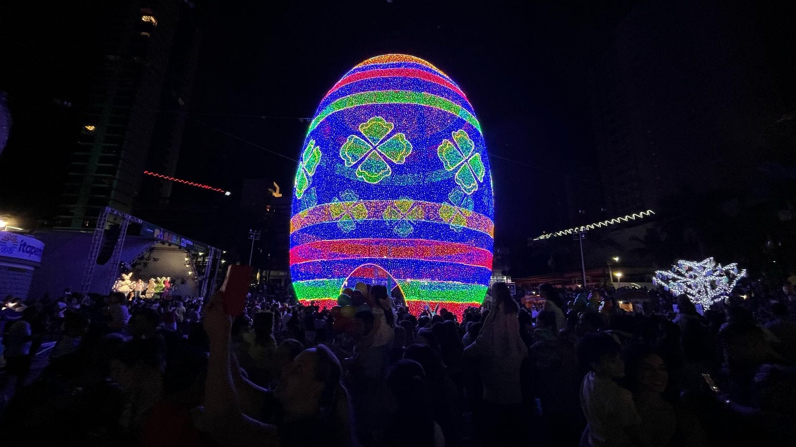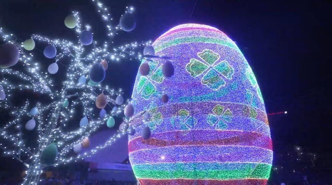 Veja vídeo do acendimento das luzes do ovo gigante