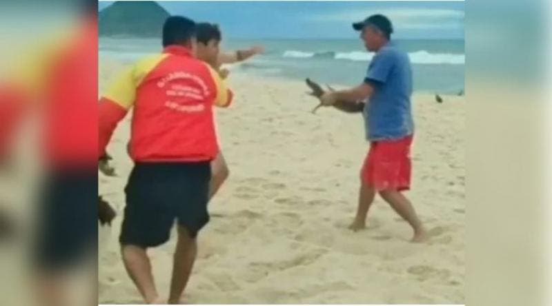 No vídeo, feito na manhã do dia 20, é possível ver os dois homens brigando pelo animal, que chegou a ser “usado como arma” por um deles e depois foi deixado na areia. Um guarda-vidas do Corpo de Bombeiros do Rio, ao perceber as agressões, tentou separar a dupla, mas também foi ameaçado com o jacaré. A identidade dos envolvidos não foi revelada.