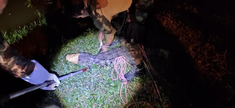 O jacaré foi localizado em uma das ruas do bairro. A espécie é ameaçada de extinção. Os policias utilizaram técnicas de captura, para imobilizar o animal, e conseguiram devolvê-lo ao seu habitat natural.