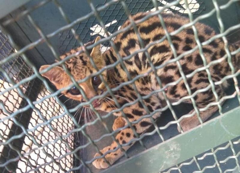 Uma jaguatirica foi capturada pelo Corpo de Bombeiros na tarde desta quarta-feira (19) dentro de uma casa no bairro Bela Vista, na cidade de Ponte Serrada, no Oeste de SC.