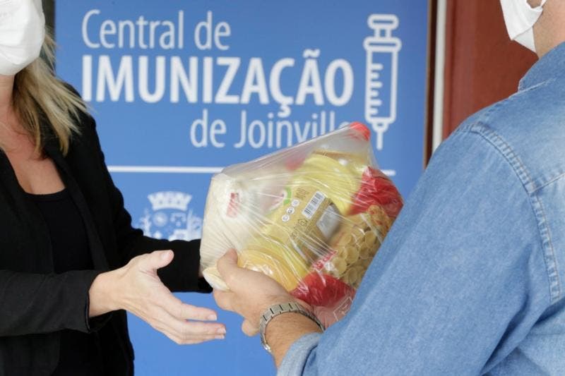 Joinville abriu pontos de coleta para doação de alimentos nos locais de vacinação contra a Covid-19. Desde a última terça-feira (6), os moradores que receberem a imunização no Centreventos Cau Hansen ou nas nove unidades de saúde básica poderão também fazer a contribuição.