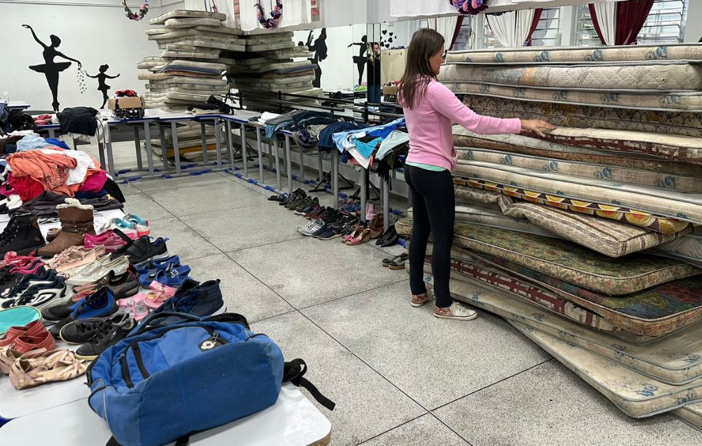 Com pessoas desabrigadas, a cidade está utilizando as estruturas de duas escolas municipais para apoiar as pessoas atingidas. No local, há colchões e outros materiais necessários para a abertura de abrigos emergenciais.