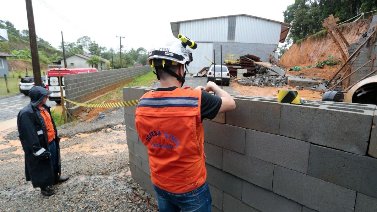 Até a manhã de terça-feira (23), foram registradas 14 ocorrências pela Defesa Civil por conta das chuvas. As mais graves foram dois deslizamentos. Um deles aconteceu no bairro Vila Nova, onde dois galpões foram interditados após um muro que estava em construção cair e atingir dois trabalhadores.