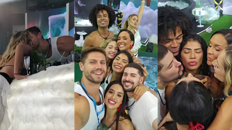 Teve até um beijo coletivo entre Samira, Marcelo, Breno, Maxiane, Marciele e Jordana. A festa de sábado (24) teve show de Pedro Sampaio, participação especial de Kelly Key e Melody, piscina de espuma e muita descontração.
