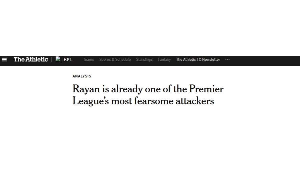 O site americano The Athletic definiu o brasileiro de apenas 19 anos como “um dos atacantes mais temidos da Premier League”. Na ocasião, a reportagem, assinada pelo jornalista Michael Cox, descreveu que o clube inglês “descobriu uma joia”.