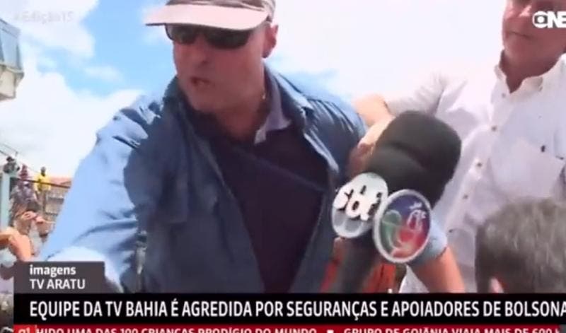 Repórteres da Globo e do SBT são agredidos durante visita de @jairbolsonaro à Bahia.