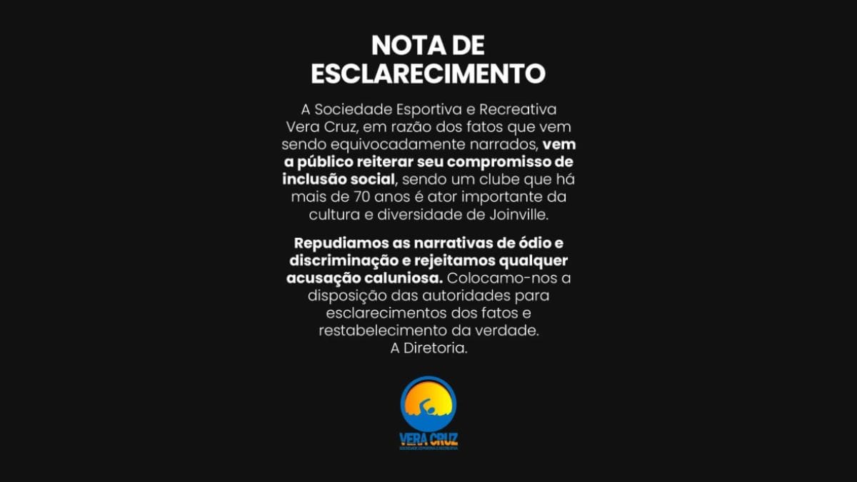 Em nota enviada à reportagem da NSC na tarde desta segunda-feira, a Sociedade Vera Cruz afirmou que não negou acesso à vítima e que aguarda provas para um posicionamento. Confira na íntegra.