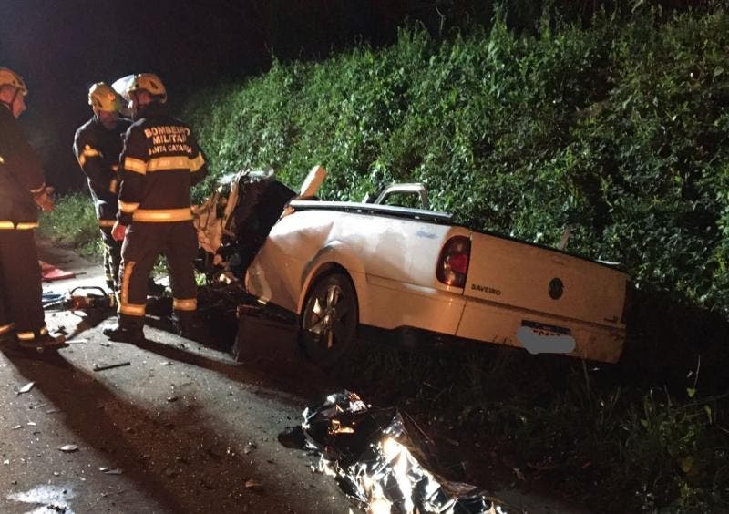 A equipe do Corpo de Bombeiros Militar de Santa Catarina (CMBSC) que atendeu a ocorrência, por volta das 4h da madrugada, encontrou o corpo da vítima já sem vida na ocasião e ainda preso às ferragens de uma Saveiro com placa de Catanduvas.