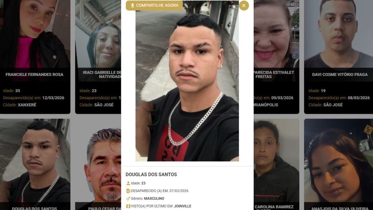 A família de Douglas dos Santos vive momentos de angústia. Isso porque o jovem de 23 anos está desaparecido há quase 10 dias em Joinville, no Norte catarinense. O desaparecimento de Douglas ocorreu no sábado, dia 7 de março, três dias antes do jovem iniciar em um novo emprego, em uma metalúrgica da cidade.