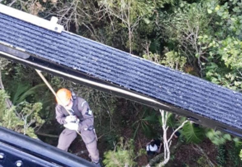 Ao confirmar que as quatro pessoas estavam sem ferimentos, um dos socorristas desceu por rapel e começou a retirada individual dos jovens.