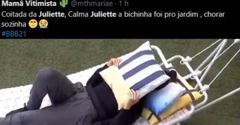 Não, Juliette não está fazendo drama, não está sendo egoísta. Ela apenas está decepcionada pois queria muito ganhar o carro e a liderança. Ela não está culpando a Pocah como já repetiu inúmeras vezes, ela só está no direito dela de ficar triste.#bbb21 | coitada da Juliette pic.twitter.com/yPdKwyoFeZ