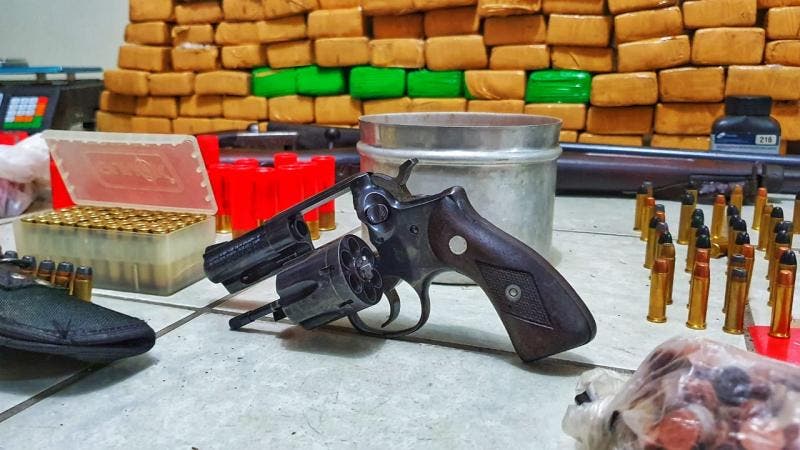 No quarto, foram encontrados quatro armas de fogo, munição, balança de precisão, e quase R$ 17 mil em dinheiro, além dos 190 quilos de maconha.