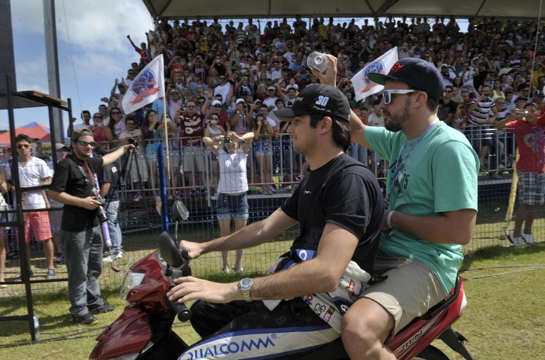 Bicampeão mundial de Fórmula 1 esteve em Penha em 2013 (Foto: Flávio Neves, Arquivo NSC)