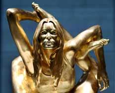 Foi inaugurada nesta quinta-feira no British Museum uma estátua da modelo inglesa Kate Moss feita com 50 quilos de ouro maciço. A escultura, chamada Siren, é avaliada em R$ 4,4 milhões. A obra é uma criação do artista britânico Mark Quinn e faz parte da mostra de obras contemporâneas Statuephilia.