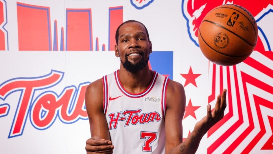 Em 18 anos de NBA, Kevin Durant já jogou 1.220 partidas (apenas temporadas regulares), com médias de 27,2 pontos, 6,9 rebotes, 4,4 assistências. O astro tem passagens por Oklahoma City Thunder (e Seattle Supersonics), Golden State Warriors, Brooklyn Nets, Phoenix Suns e, agora, Houston Rockets.