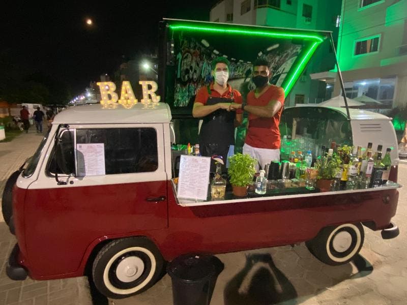 Já imaginou um bar que pode ir a qualquer lugar? Parece uma ideia distante, mas não é. Matheus Capri, 29 anos, e João Paulo Dias, 31 anos, pensaram fora da caixa e criaram a “Uai Bahr” – uma kombi equipada para ser um bar móvel. O veículo está todas as noites na praia de Canasvieiras, no Norte de Florianópolis.