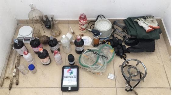 Um laboratório de drogas sintéticas foi encontrado em uma residência do bairro Santa Bárbara, em Criciúma, no Sul de Santa Catarina. Os materiais foram localizados na tarde do domingo (1°), por volta das 14h.