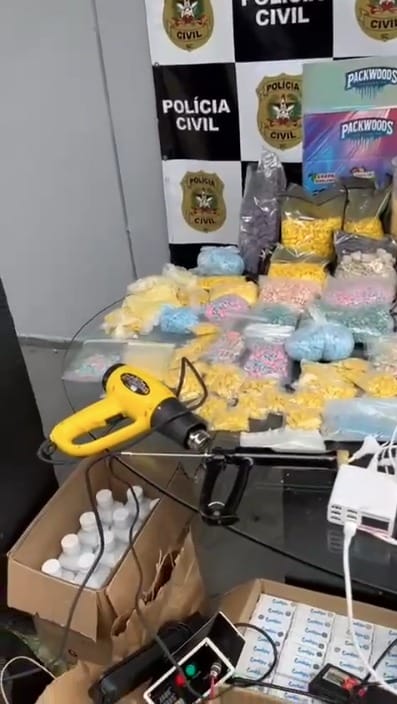 O laboratório funcionava em um imóvel no bairro Tabuleiro, em Camboriú. Neste local, os policiais localizaram ainda 13 quilos de comprimidos de ecstasy, um quilo e meio de MDA, 7,8 mil 50 micropontos de LSD, além de diversos itens usados na produção, armazenamento e embalagem das drogas.