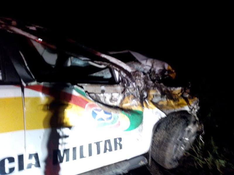 A Ford Ranger foi encontrada com a frente completamente destruída e sem o condutor. O homem foi localizado mais tarde, já às 2h da madrugada deste domingo (19), e acabou preso.
