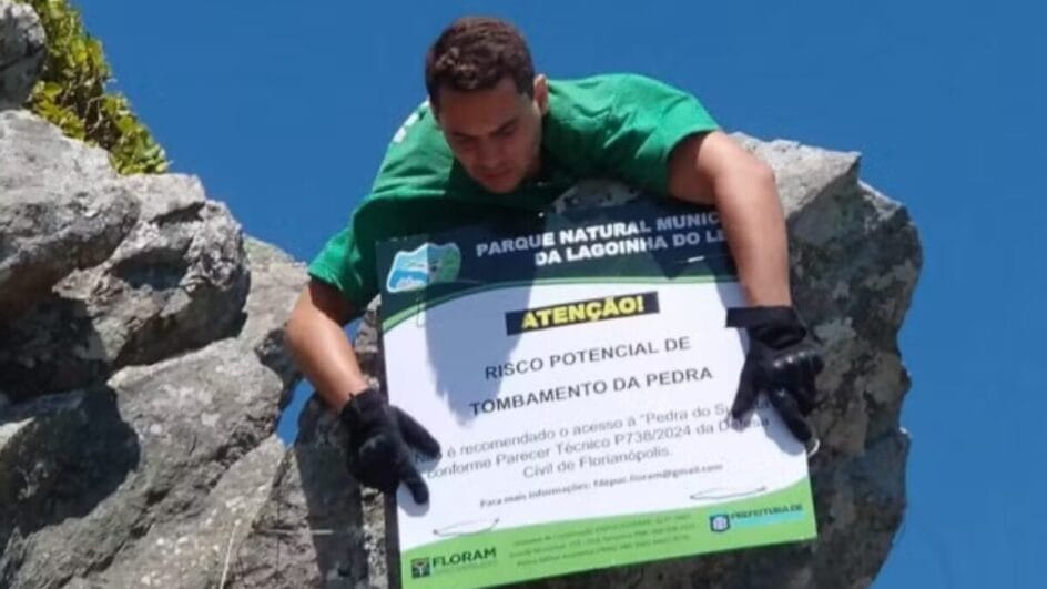 Os riscos da trilha não estão só no caminho, mas também em locais famosos pelas fotos radicais. A pedra do Pico da Coroa, um dos pontos mais altos da trilha da Lagoinha do Leste, já chegou a ser interditada por risco de tombamento, em 2024.