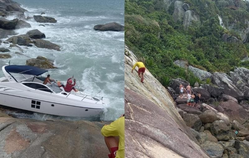 O local onde barco estava não era de fácil acesso. Imagens mostram os bombeiros percorrendo uma trilha até chegar às pedras. Depois do resgate, dois guarda-vidas nadaram até a lancha e removeram a embarcação. Um jetski foi usado para tirar a lancha do local.