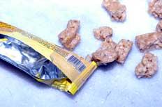 O material segue para a análise e, dependendo do resultado, o lote do produto também é analisado. Os resultados são enviados ao cliente. A pessoa ainda recebe uma nova barrinha de cereal.