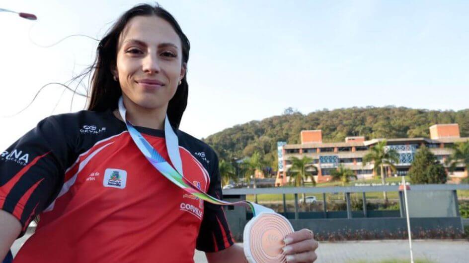 A joinvilense Letícia Oro Melo conquistou o terceiro lugar na prova de salto em distância do Grande Prêmio Brasil de atletismo, nesta quarta-feira (10), em São Paulo (SP).