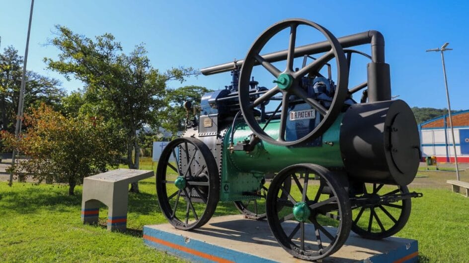 O locomóvel centenário da Praça da Chaminé voltou ao local após passar por um processo completo de restauração. Símbolo do início da industrialização de Criciúma, o equipamento ficou cerca de seis meses em reparo antes de retornar ao espaço público.