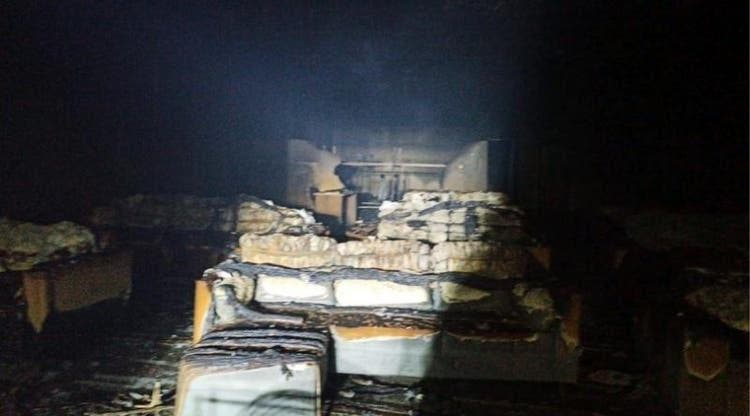 Os sofás, camas e cabeceiras foram tomados pelo fogo antes da chegada da guarnição. O isopor e a manta do teto do estabelecimento derreteram e caíram sobre os móveis. O Corpo de Bombeiros utilizou cerca de dois mil litros de água para apagar o incêndio.