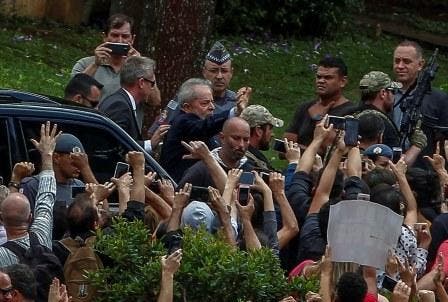 O contato dos apoiadores com o ex-presidente ocorreu do lado de fora da capela, sob vigilância da Polícia Militar. Minutos antes da chegada de Lula, a Polícia Federal determinou que ficassem na capela apenas familiares e amigos próximos.