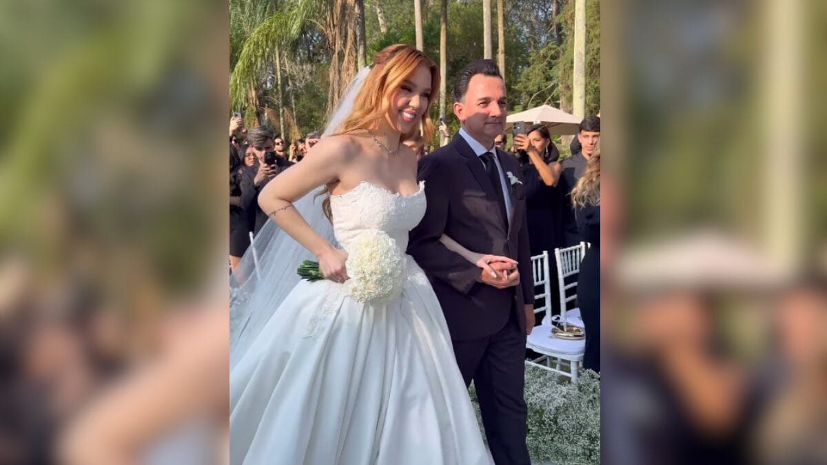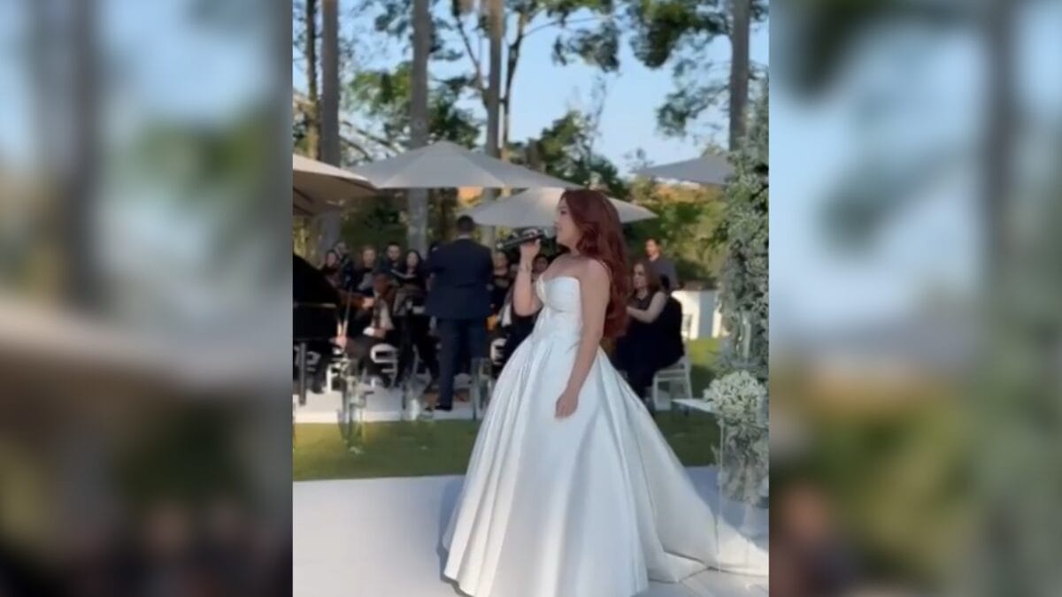 Mari entrou primeiro, ao lado do pai biológico, André Luis. Já Júlia entrou logo em seguida, ao som da voz da cantora, que deixou os convidados emocionados ao cantar com a voz embargada.
