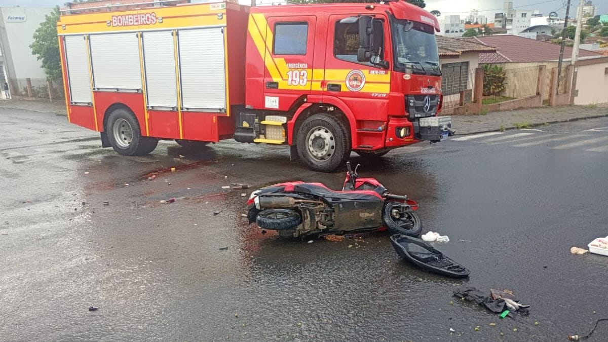 O acidente foi registrado pelo Corpo de Bombeiros Militar por volta das 18h, no cruzamento das ruas Paul Harris e Felipe Schmidt, no Centro do município.