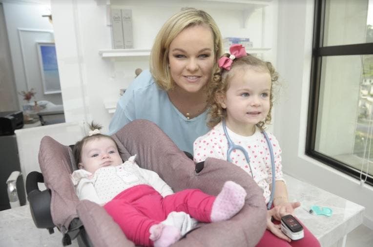 Casada há sete anos, a infectologista já era mãe de Maria Flor, de dois anos e sete meses, quando fez o teste que confirmou a segunda gestação, de Olívia, agora com quatro meses.