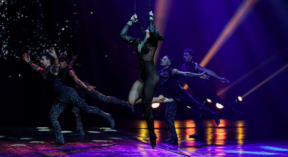 Na trupe também estão talentos internacionais, como a argentina Quimey Freire, natural de Buenos Aires. Bailarina e acrobata, ela integra o Mirage Circus desde 2024 e despontou com seu solo nas faixas aéreas.