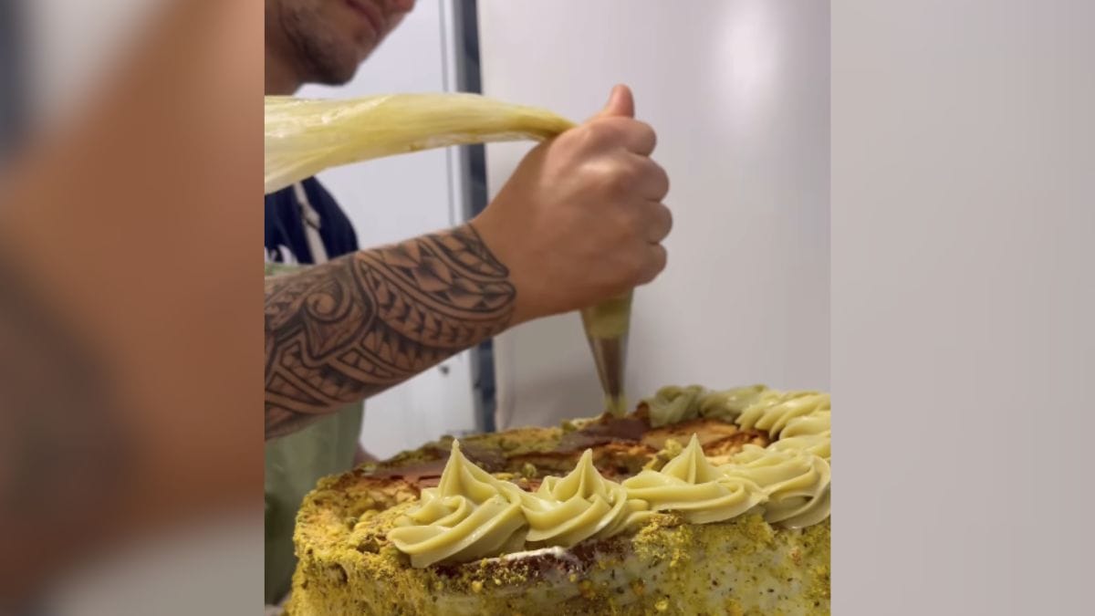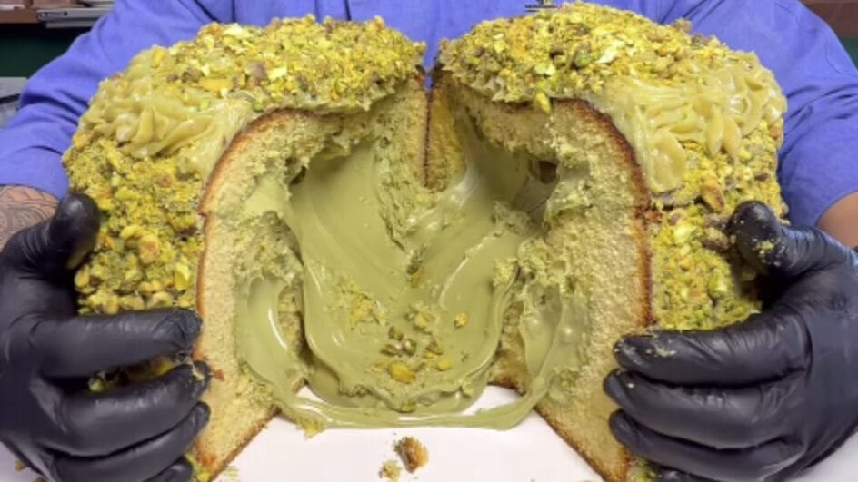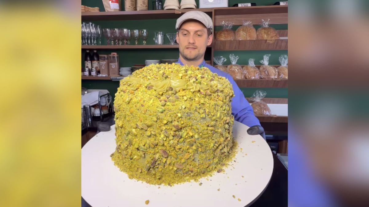 As frutas cristalizadas ou o chocolate comum deram lugar ao ingrediente viral das redes sociais em Joinville, no Norte de Santa Catarina. O maior panetone de pistache do Brasil foi produzido por um casal que tem um estabelecimento especializado em pães artesanais. O doce de recheio cremoso e uma massa fofinha custa mais de R$ 2 mil.