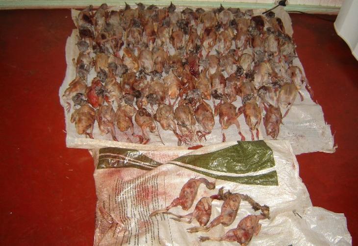 Os animais, de espécies como pombas e codornas amarelas, estavam limpos e prontos para o consumo. Com a dupla também foram apreendidos materiais de caça e de acampamento.