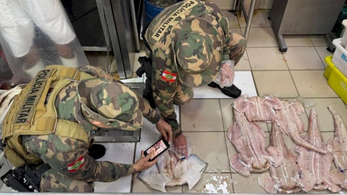 Em operação fiscalizatória no Mercado Público de Florianópolis, a Polícia Militar de Santa Catarina (PMSC) apreendeu aproximadamente 1,178 tonelada de pescados. Durante a ação, que ocorreu nesta terça-feira (29), multas que somam mais de R$ 138 mil foram aplicadas. Entre os produtos apreendidos estavam 11 exemplares de Cação-anjo, espécie que é ameaçada de extinção, segundo a PMSC.