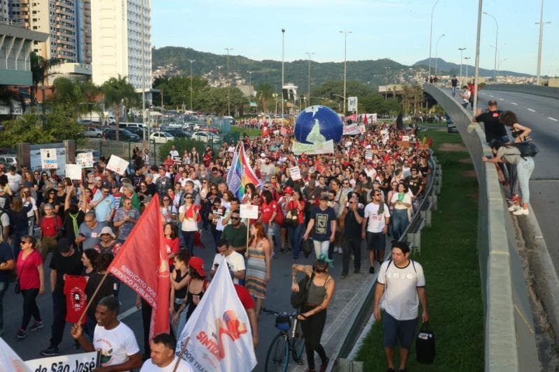 Um protesto contra a Reforma da Previdência, em Florianópolis reúne entre 8 e 10 mil pessoas, segundo estimativa da Polícia Militar. O ato começou por volta das 16h, no Terminal de Integração do Centro (Ticen). De lá, os manifestantes saíram em passeata em direção à Avenida Beira-Mar Norte.