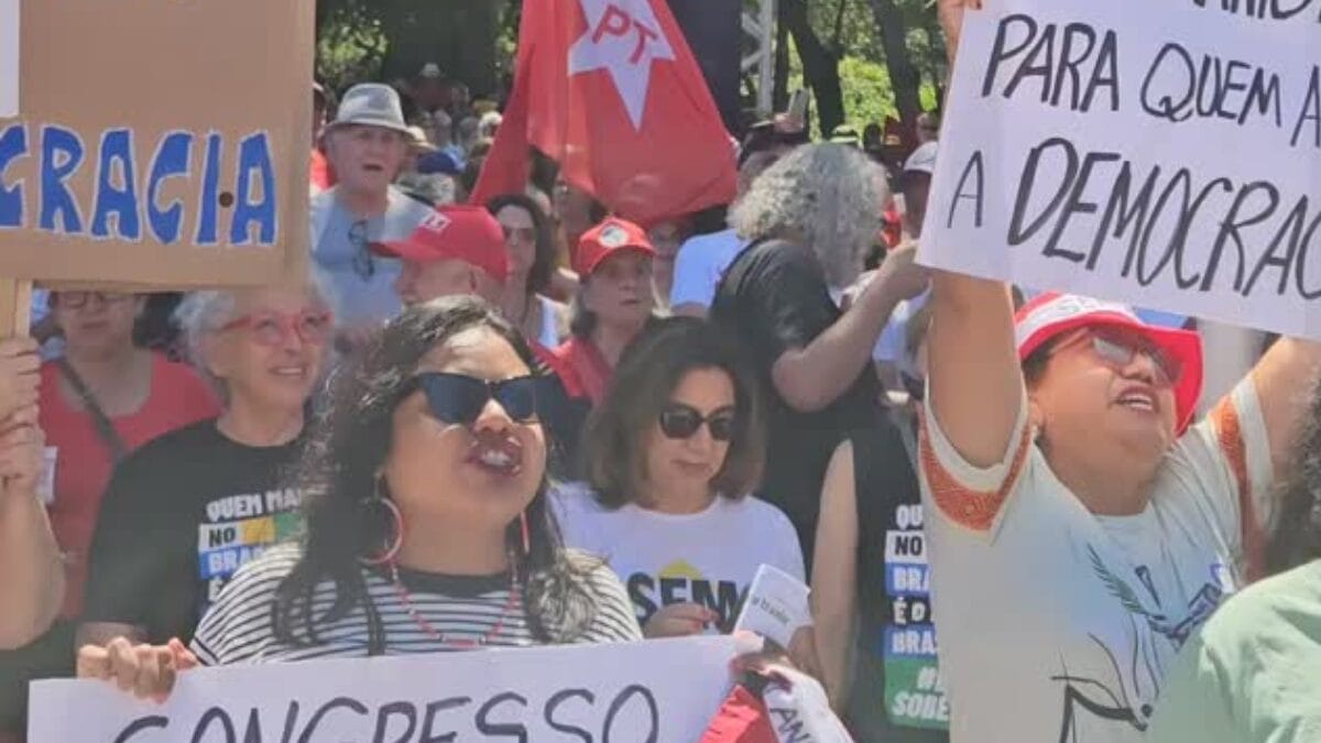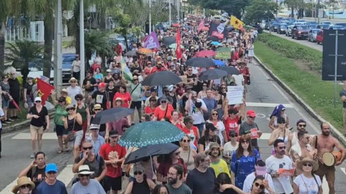 Em Florianópolis, os manifestantes se reuniram no Parque da Luz, no Centro da capital, e seguiram em caminhada pela avenida Beira-Mar Norte. O grupo carregava cartazes com dizeres como “sem anistia” e “Congresso inimigo do povo”.