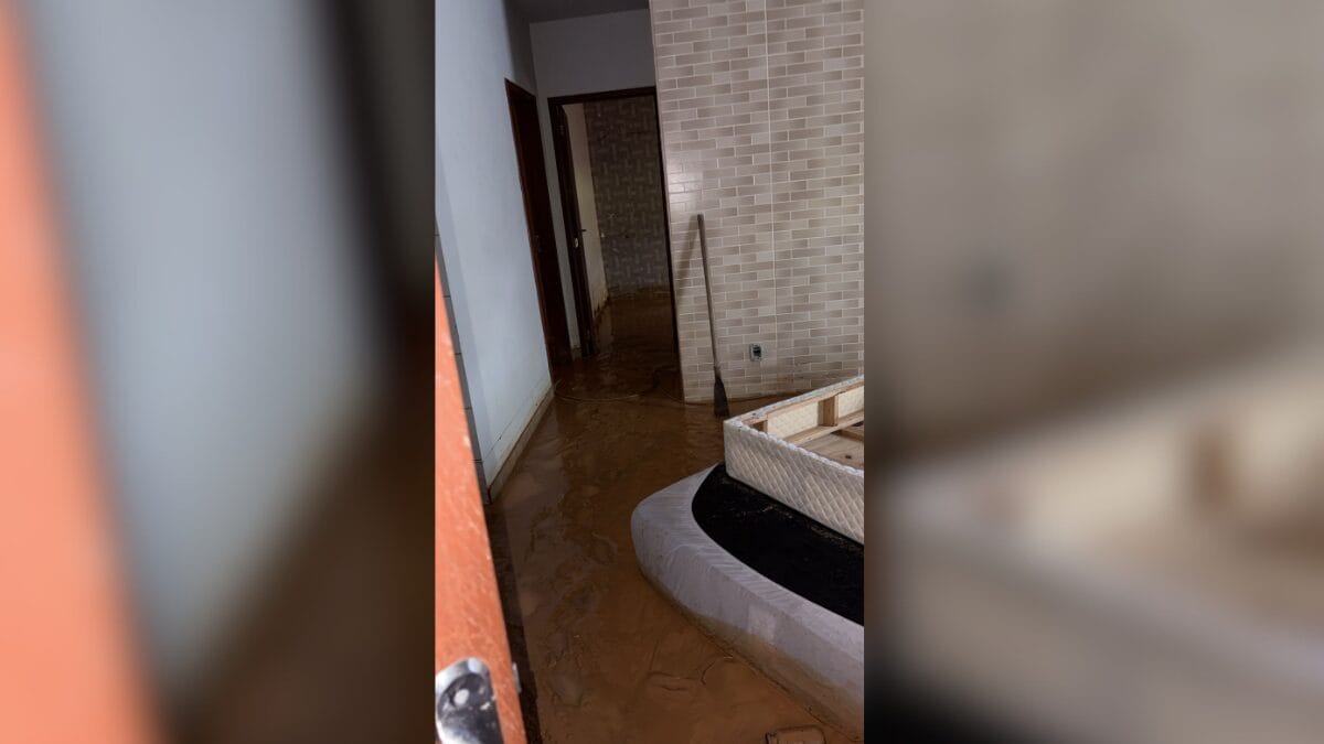 Nenhum estrago foi registrado na casa de Guilherme, mas na casa do vizinho dele, localizada no mesmo terreno, diversos móveis foram destruídos devido os temporais registrados durante a madrugada de terça-feira na cidade. Em fotos e vídeos enviados pelo morador (veja abaixo), é possível ver a residência inundada pela lama.