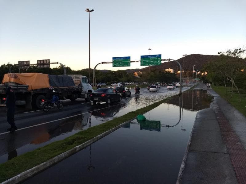 A água também atingiu a rodovia Doutor Antônio Luiz Moura Gonzaga, na SC-406, no trecho entre o bairro Rio Tavares e a Lagoa da Conceição.